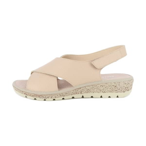 Sandalia de mujer Doctor Cutillas Modelo 35310 en piel. Plantilla en piel ribeteada en tejido. Con velcro. Piso goma y cuña de 2 cm, imitando corcho.