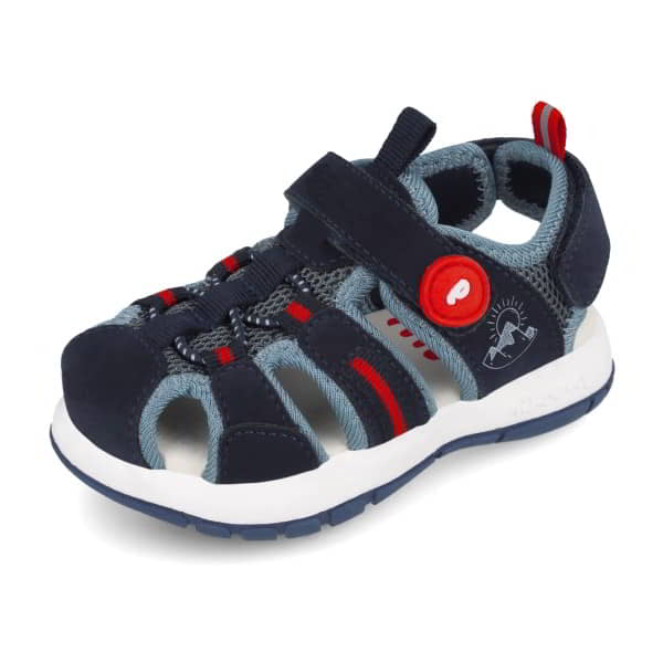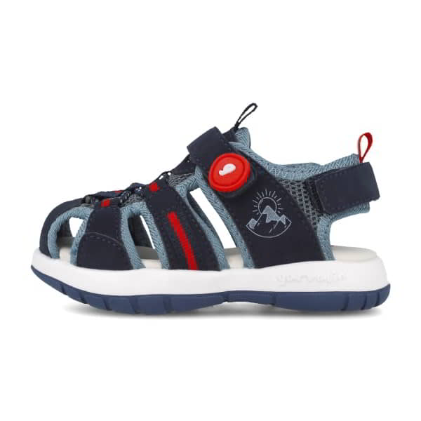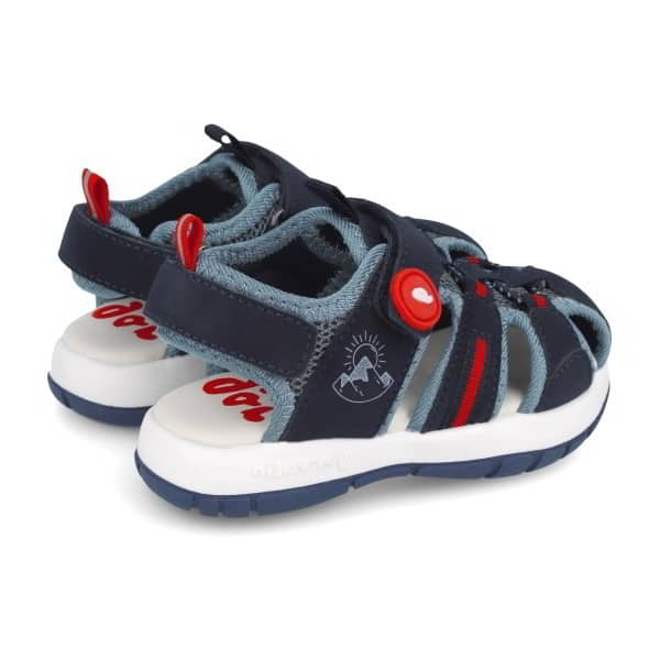 Sandalia para niñ@ Garvalin Modelo Sandalia Cerrada en tejido y material PU. Forro en tejido. Plantilla acolchada. Con velcros. El piso es de goma bicolor.