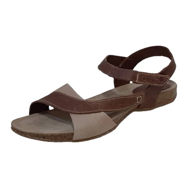 Inter-Bios Modelo 4487 – Sandalia de mujer en vaquetilla piel, combinada en dos colores. No lleva forro. La plantilla es bio-anatómica de piel, por lo que se adapta muy bien a la planta del pie. Tiene cierre velcro en empeine para su ajuste. Piso de caucho-corcho con cuña bio de 1,5 cm.