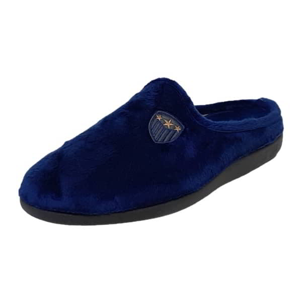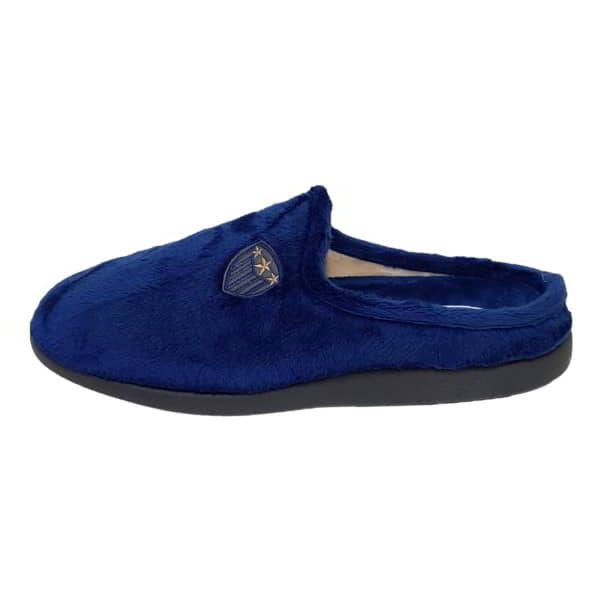 Zapatilla casa de hombre Javer Modelo 27-118 en paño. Forro y plantilla extraible en paño. Con escudo bordado. Piso de goma negro flexible.