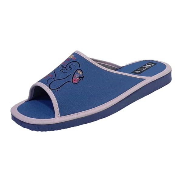 Zapatilla casa de mujer Javer Modelo 32-411 en tejido. Abierta de puntera. Forro y plantilla en tejido. Tiene dibujo. Piso goma micro ligero y cuña de 1 cm.
