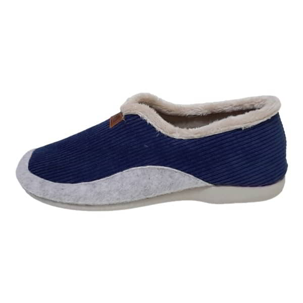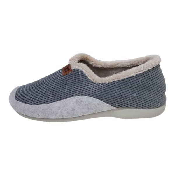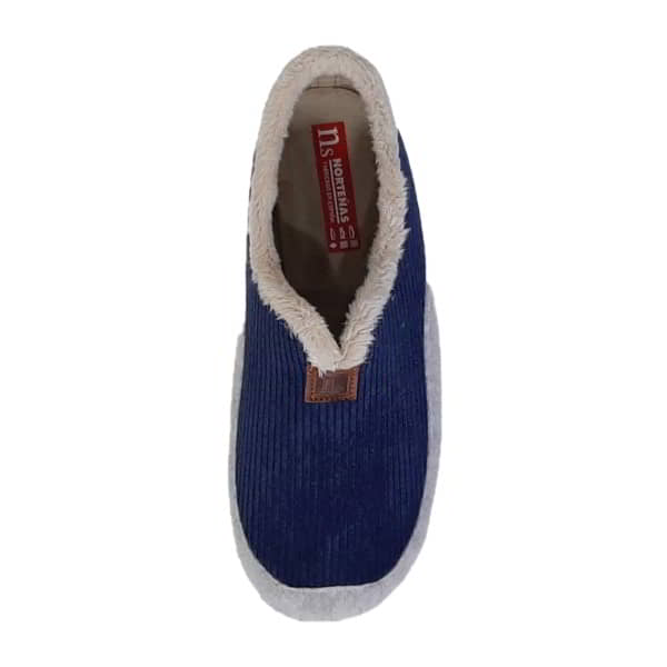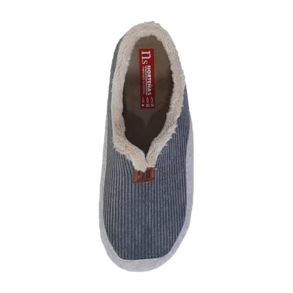 Zapatilla casa de mujer Norteñas Modelo 19-323 en pana. Forro y plantilla en paño. Con puntera en fieltro. Abertura en empeine. Piso goma y cuña de 1,5 cm.