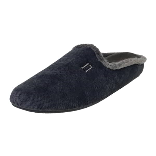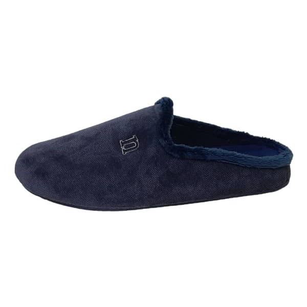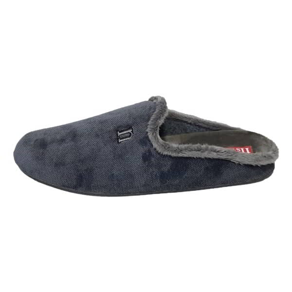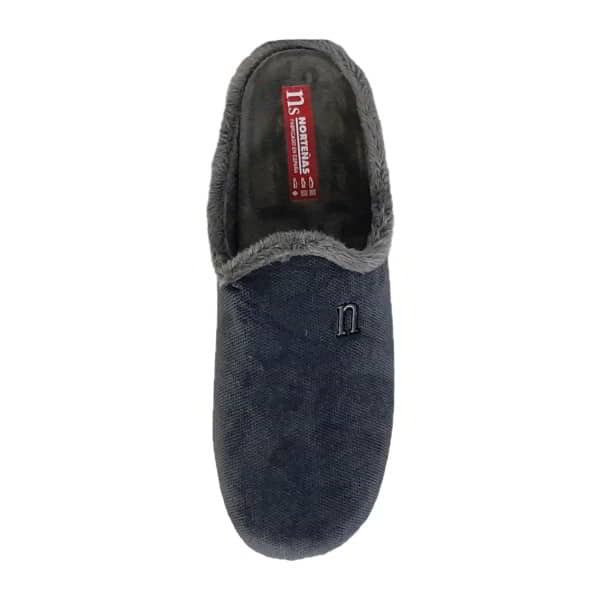 Norteñas Modelo 3814791 – Zapatilla abierta de casa para hombre en paño jaspeado. Tiene el forro y plantilla extraible en paño al tono. Está ribeteada en terciopelo al tono. Con bordado del logo de la marca en el lateral del empeine. El piso es de goma muy flexible.
