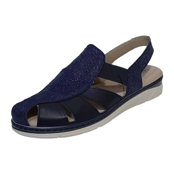 Pitillos Modelo 11003 – Sandalia para mujer en piel. El forro y plantilla extraible en tejido transpirable. Con gomas en el empeine para su ajuste. Está combinada en piel lisa y piel grabada. Está cerrada de puntera. El piso es de goma beige con detalle al tono y además está cosido. Tiene cuña de 2 cm.