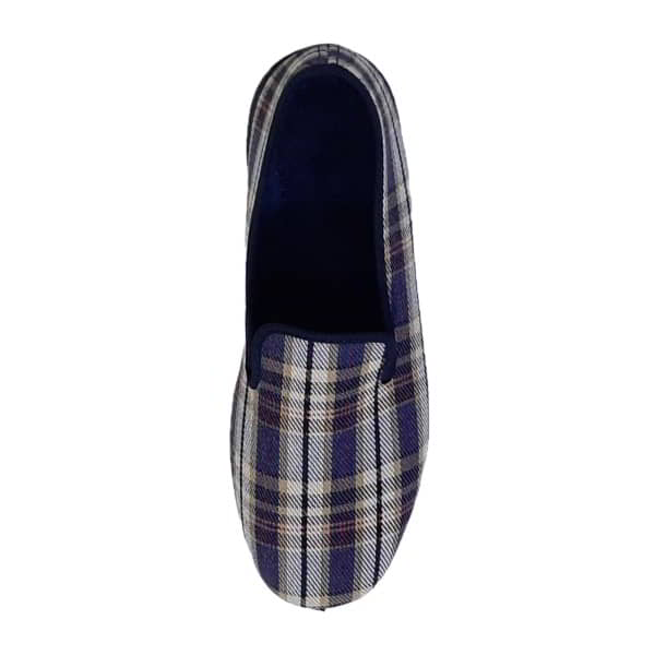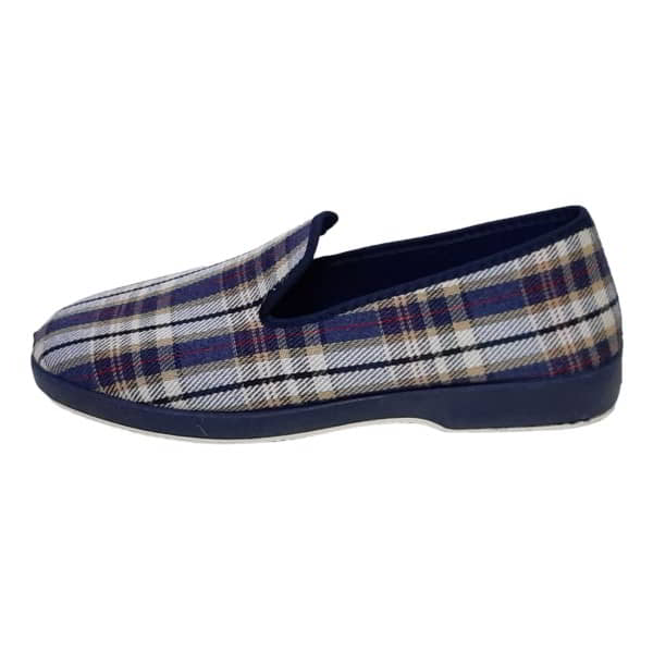 Zapatilla para casa de hombre Soca Modelo 500 Cuadro Verano en tejido cuadros. Forro y plantilla en toalla. Ribeteada en tejido liso. Con el piso de goma.