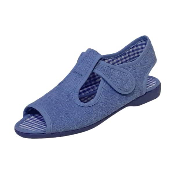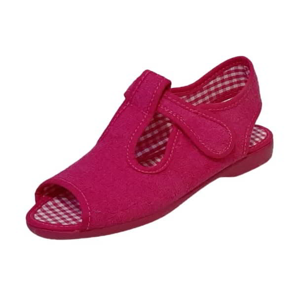 Vulca-Bicha Modelo 555-270 – Zapatilla para estar por casa de niñ@ en tejido toalla. Tiene forro y plantilla en tejido a cuadros al tono. Esta ribeteada en tejido al tono. Con velcro en el empeine para su ajuste. Con el piso de goma flexible al tono.